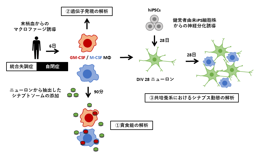 また、自閉スペクトラム症や統合失調症患者さんの炎症・免疫異常に着目し、末梢血から誘導したマクロファージを用いた培養研究も行なっています。